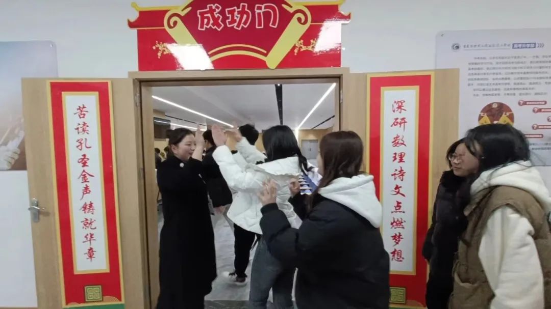 高考部部长与每位学生击掌,鼓舞士气,激发斗志。