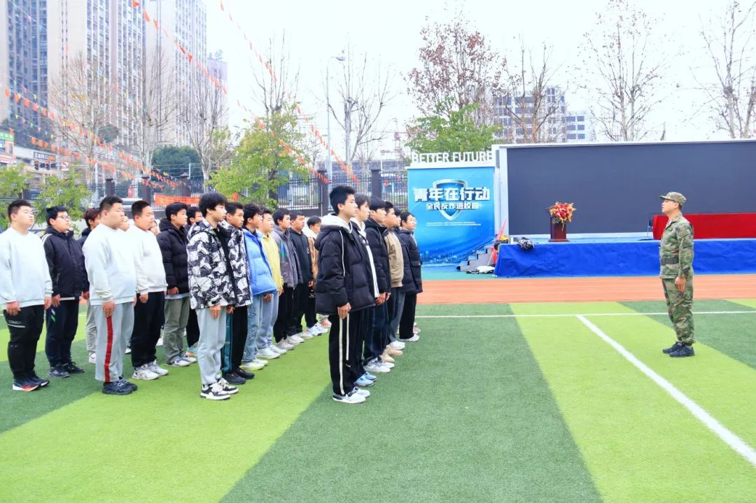 最后,党支部书记袁坤发表勉励讲话。他表示,“天将降大任于斯人也,必先苦其心志,劳其筋骨,饿其体肤,空乏其身。”强健的体魄和坚毅的品格是担当大任的先决条件。他期望全体师生严以律己、团结奋进,并预祝大家最终圆满完成本次国防教育训练任务。
