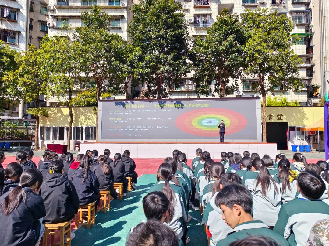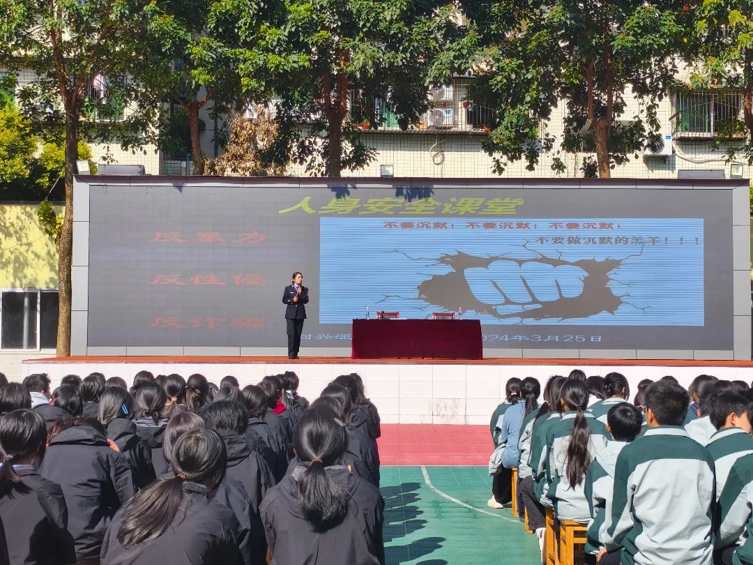 为增强学生的安全意识,减少安全事件的发生。3月25日上午我校邀请辖区派出所邓警官到校开展《与法同行,安全成长》为主题的安全法制讲座。教育引导学生运用法律保护好自己,做一个知法、懂法、守法的合格学生。