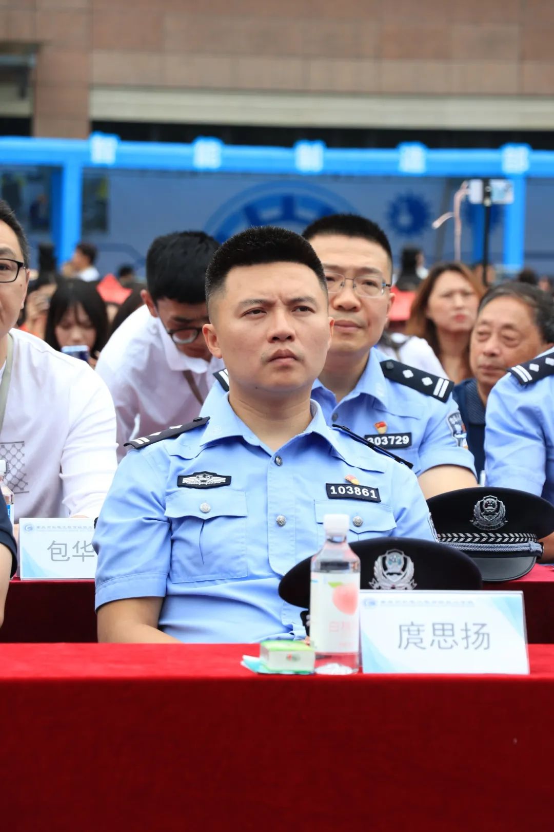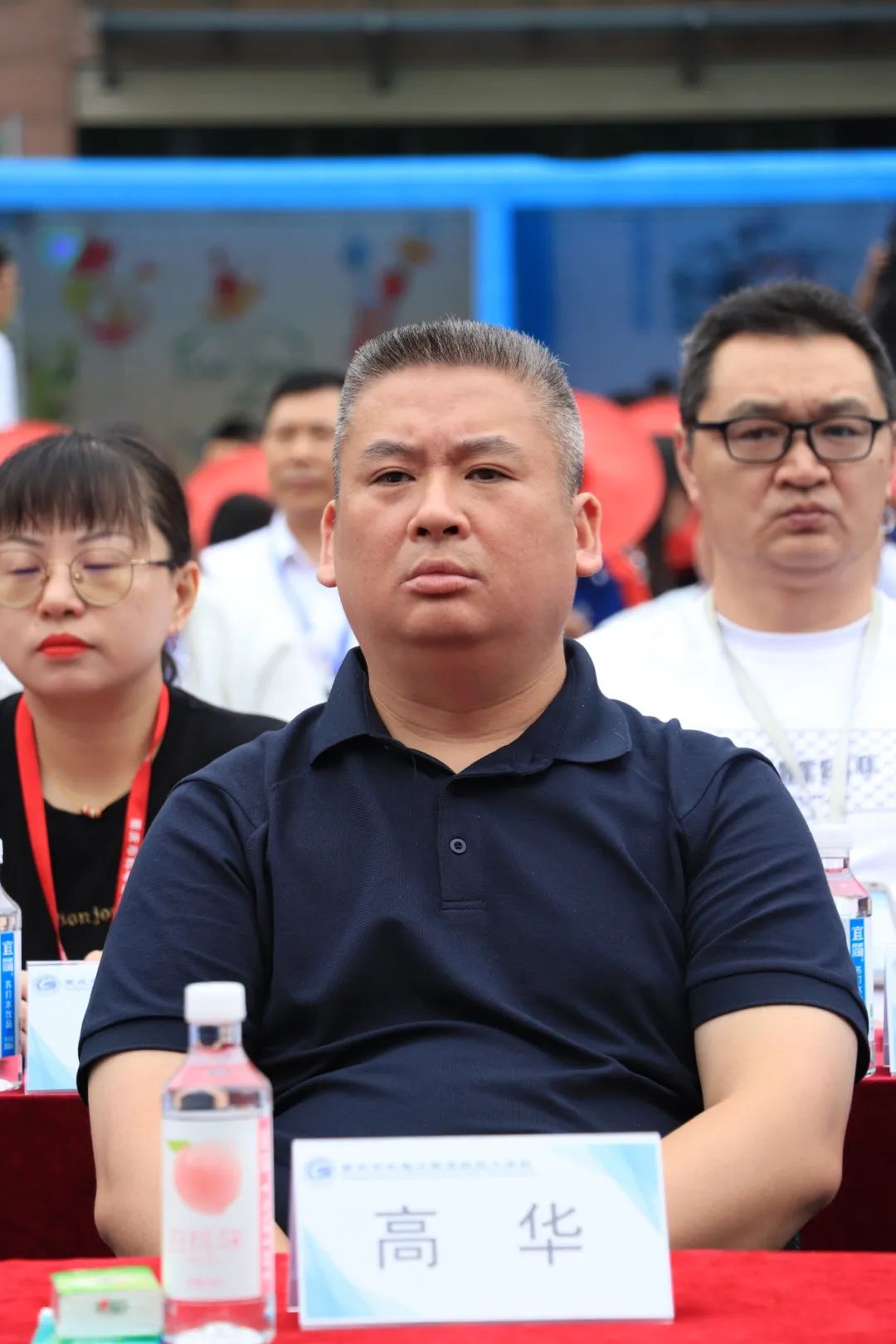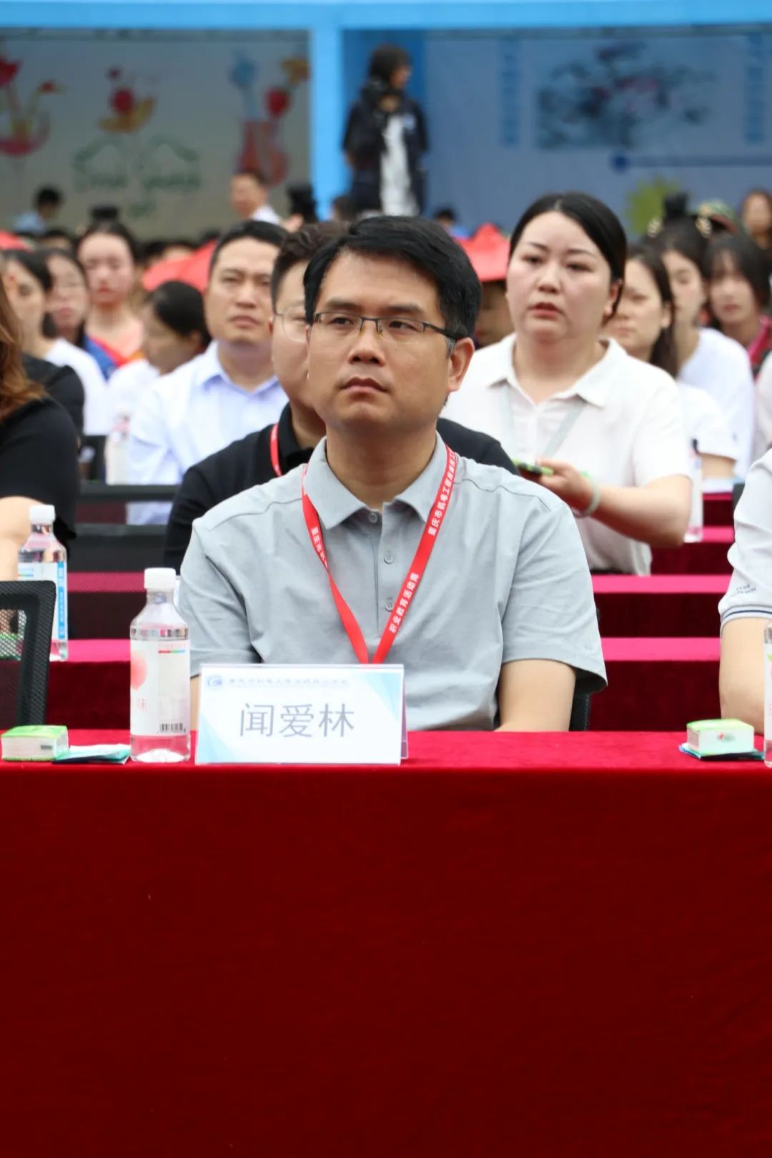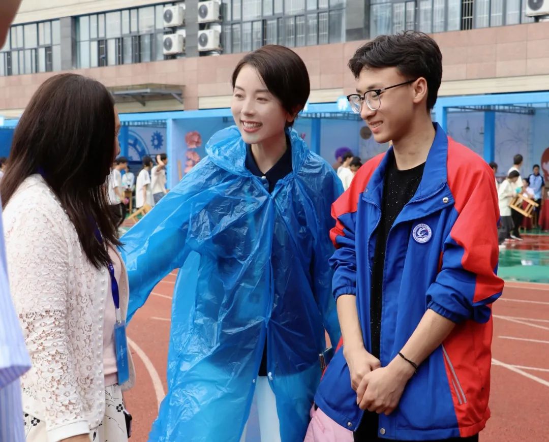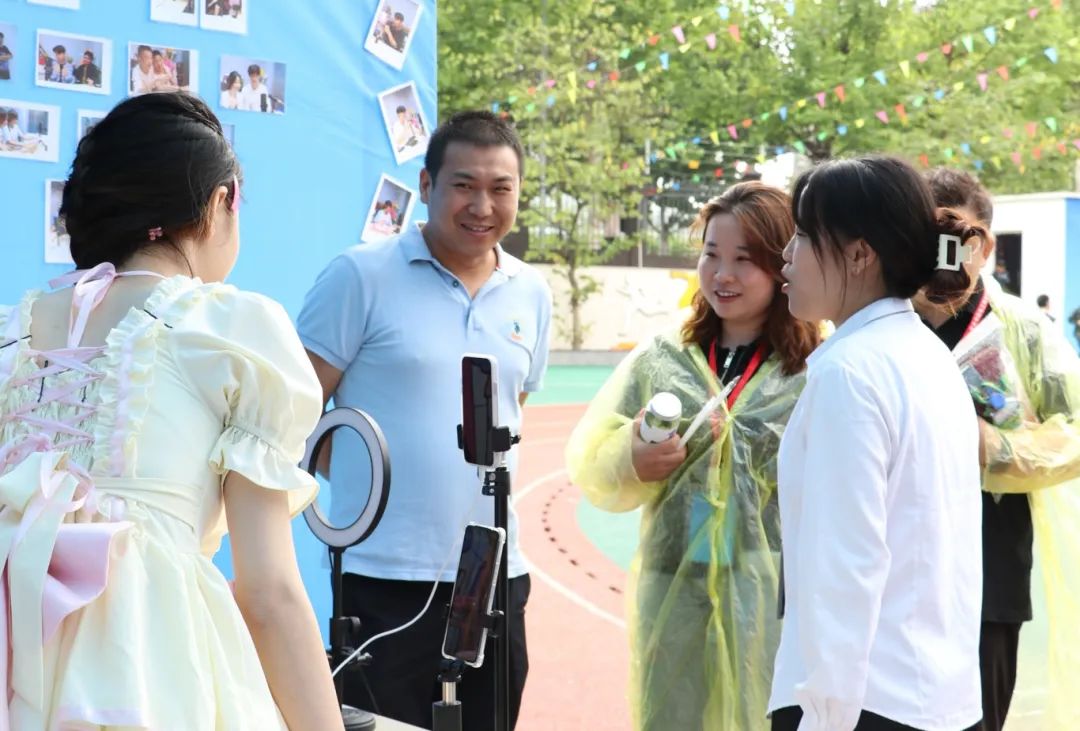 在蒙蒙细雨中,与会领导及家长陆续抵达学校,完成签到并合影留念。
