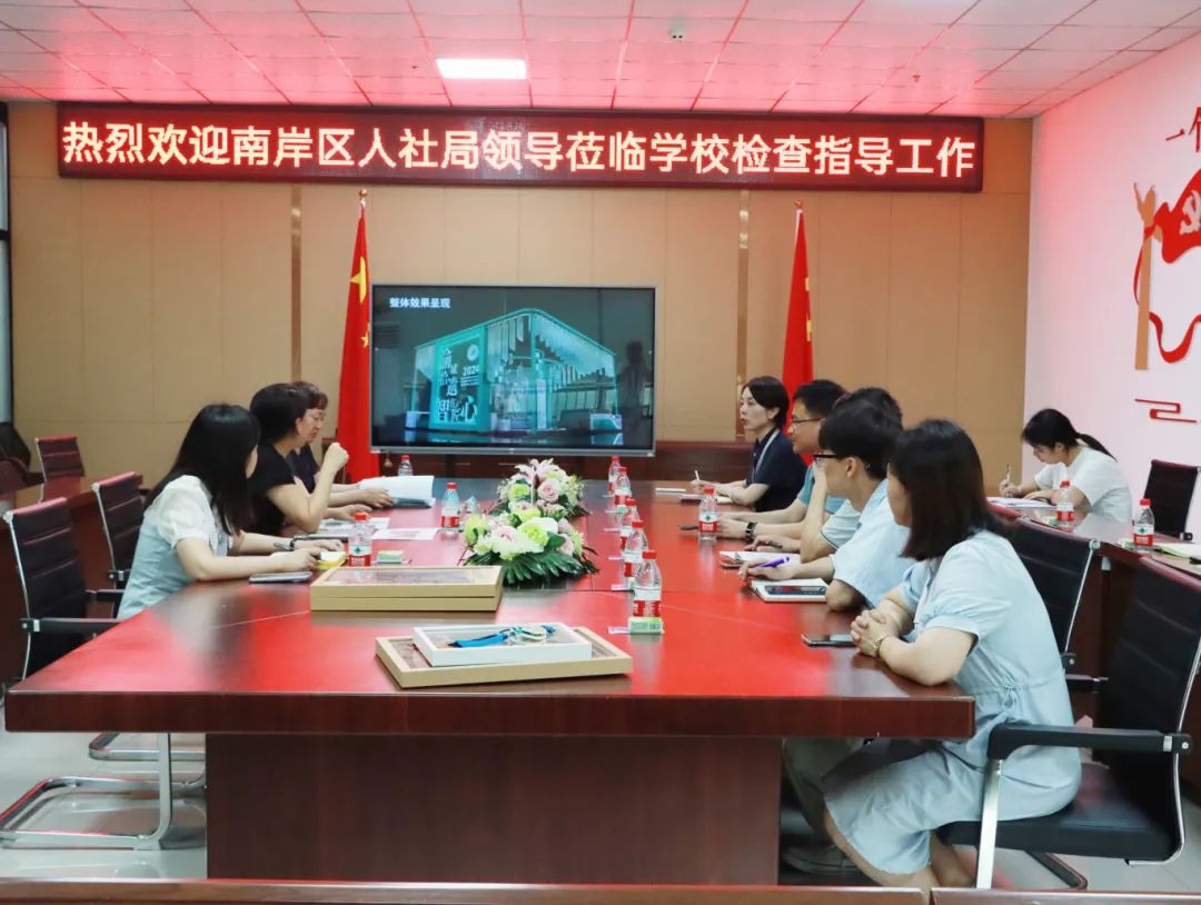 当天下午,重庆市南岸区人力资源和社会保障局党组书记、局长刘玲,南岸区就业和人才中心副主任顾滟、科长夏希一行莅临我校,就我校第二届“一带一路”国际技能大赛展厅相关事宜进行了指导。我校校长丁涛、茶园校区校长张洁及“一带一路”小组工作成员参加了座谈会。