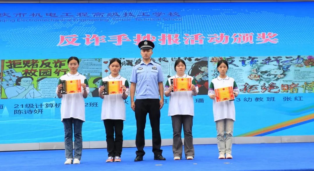 仪式上,我校对在重庆市南岸区长生桥镇人民政府举办的“反诈小能手”宣传手抄报活动中表现优异的学生以及在重庆市技工院校教学教研成果竞赛中获奖的教师进行了表彰。这些荣誉既是对他们辛勤付出的肯定,也是对他们继续努力的激励。