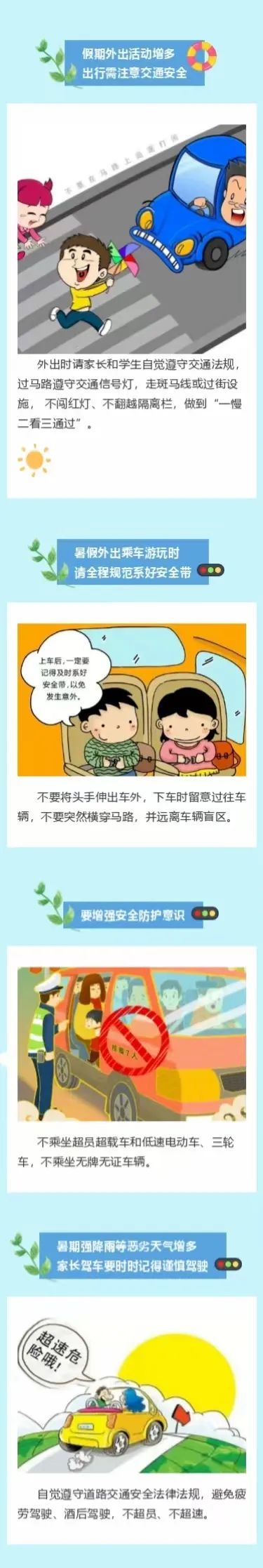 在暑假期间,家长们应加强对孩子的交通安全教育,高度关注孩子的出行安全。对于未满12周岁的孩子,应严格禁止其骑行自行车上路。同时,还请家长们反复叮嘱孩子,严格遵守校园规定,不得擅自驾驶电动自行车,并严禁将车辆交给无驾驶资格的孩子使用。